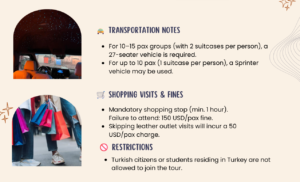 ❌ Turkish citizens or students residing in Turkey are not allowed to join the tour.