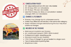 This short but rich tour offers the perfect introduction to Turkey’s heritage, blending ancient architecture, natural beauty, and unforgettable experiences.