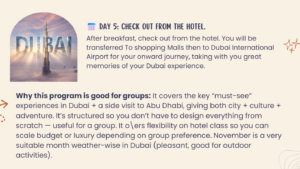 IncludedDUABI 4 NIGHTS/5 DAYSEntry Fees5 Star AccommodationPersonal Guide